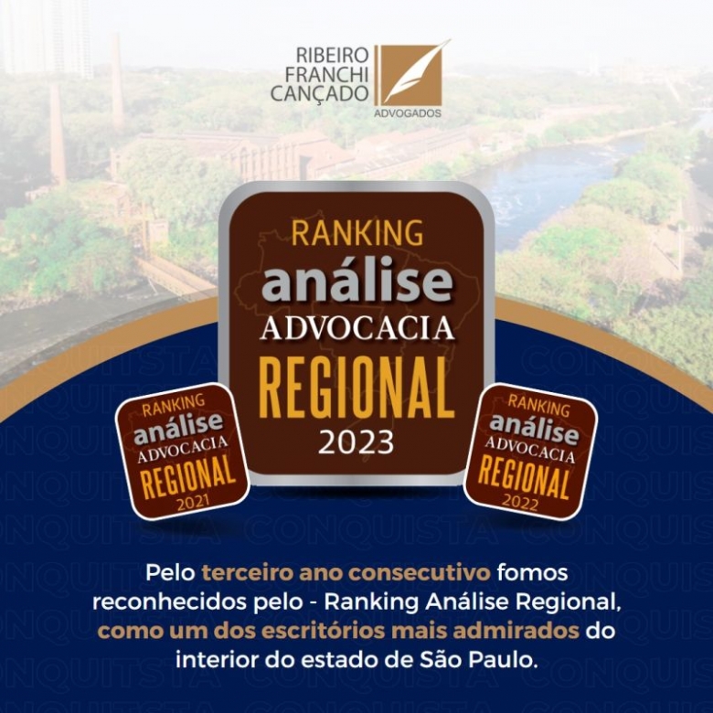 Ranking Advocacia Regional 2024 Ranking Advocacia Regional 2023 Ranking Advocacia Regional 2022 Ranking Advocacia Regional 2021 Considerado um dos escritórios de advocacia mais admirados do interior de São Paulo por 4 anos consecutivos.